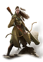 Dark-haired and brown-skinned, the wild elves—also disparagingly called "savage elves"—are more physically robust than the other subraces, though their rural lifestyle also leaves them less inclined towards academic pursuits. As if that were not enough to distinguish them, the wild elves also eschew any civilized sense of decorum, adorning themselves with hides and furs, jewelry made of feathers, bones, and other animal parts, and painting their bodies with colorfully-dyed muds.